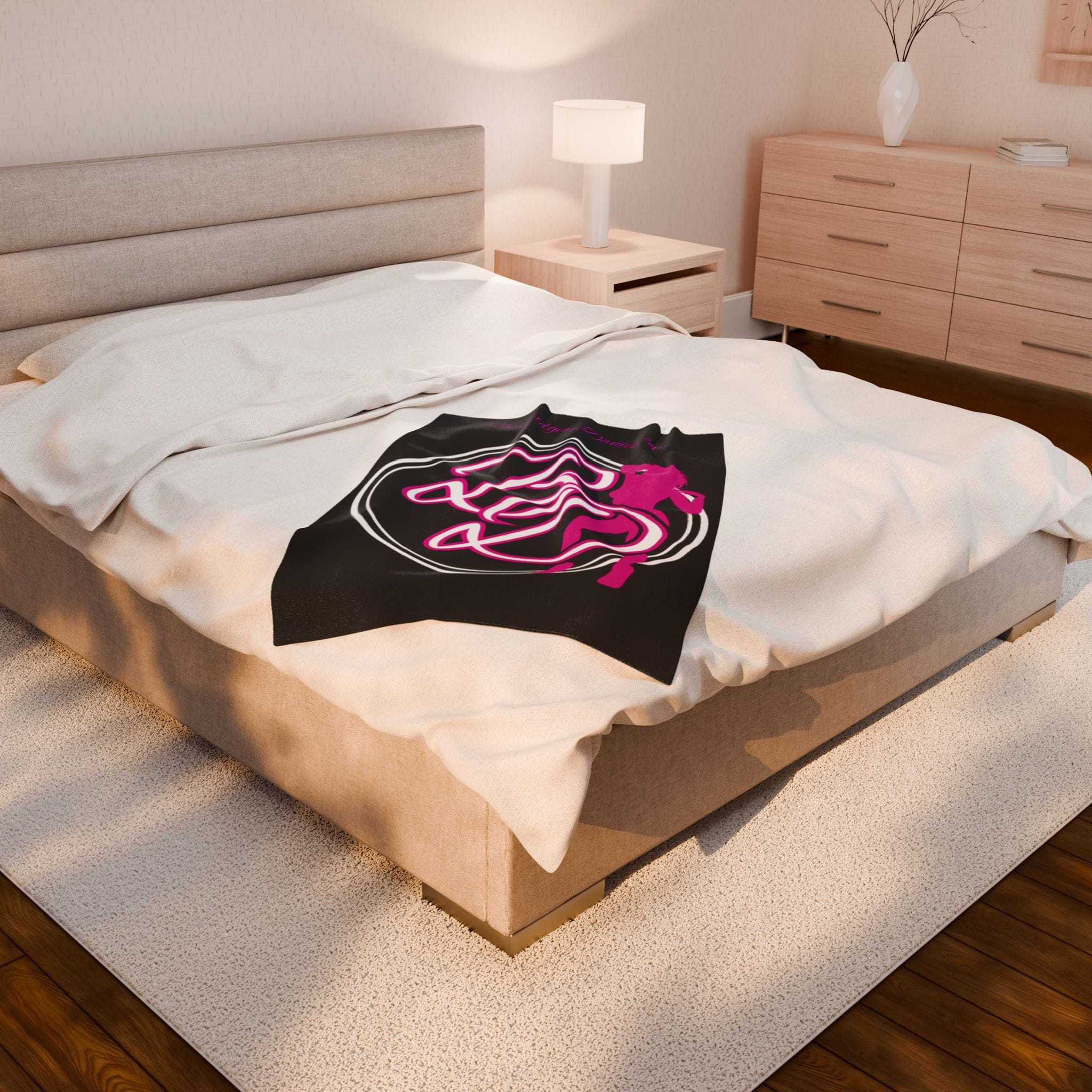 Sink into velvety warmth with this plush throw made for late-night chats, backstage breaks, and living-room glow-ups. The smooth, medium-heavy fabric wraps around you like a soft spotlight — quiet enough for a cozy night in, bold enough to echo the confident, club-ready aesthetic of the design. Vibrant, single-sided printing keeps the pink silhouette and graphic lettering crisp against the deep background, so the blanket reads like a statement piece draped over a couch, folded on a chair, or brought along to rehearsals and meet-ups. Durable double-stitched edges and quick-dry polyester mean it handles repeated use and washes without losing shape or color. This is comfort with attitude — a warm layer that matches a performer’s energy or a night-owl’s vibe.